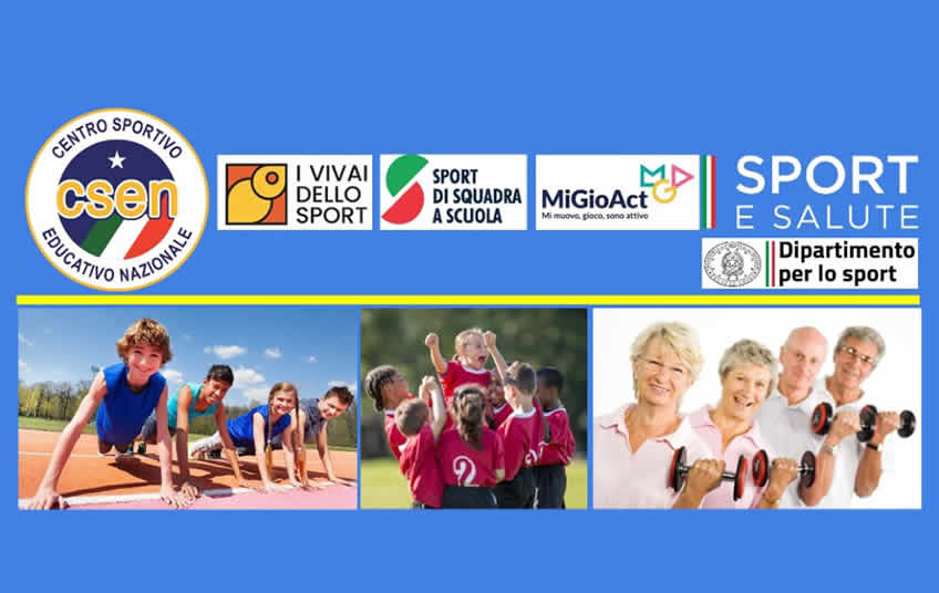 “I vivai dello sport”, rivolto ai ragazzi di età compresa tra i 10 e i 14 anni, consente di svolgere attività multi-sportive e sociali nei costituiti “vivai dello sport per tutti” in ciascuna area territoriale coinvolta, attraverso le a.s.d. e s.s.d. coordinate da C.S.E.N.; "Sport di squadra - promuovere l’inclusione dentro e fuori le scuole”, promuove la pratica motoria per gli alunni dai 3 ai 14 anni, con il coinvolgimento delle famiglie e degli studenti universitari, secondo una logica di inclusione sociale e di pari opportunità, con particolare riferimento alle condizioni di fragilità socio-economica; “MiGioAct - Mi muovo, gioco, sono attivo" si prefigge di incentivare occasioni di pratica sportiva per le donne e gli uomini over 60.