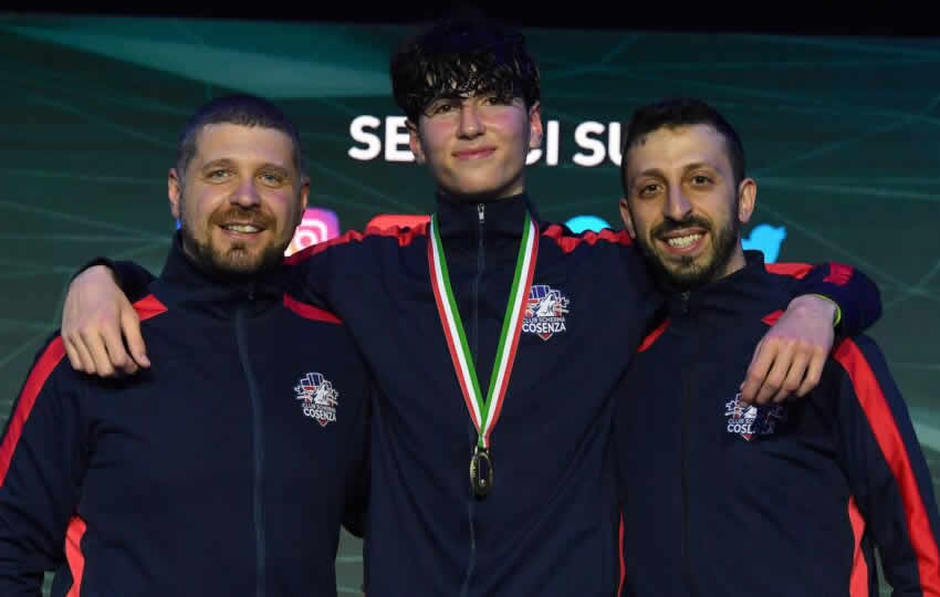 I giovani “alfieri” della scherma calabrese. La prima edizione dei Campionati nazionali Gold Cadetti e Giovani svoltisi a Riccione porterà per sempre tra le firme quella del cosentino Francesco Dodaro, vincitore della prova di spada di categoria Cadetti e autore di un risultato importante non solo per la sua carriera schermistica e gli onori del Club Scherma Cosenza, ma per tutta la regione. Ma al racconto dell’impeccabile prova di Dodaro vanno aggiunti alcuni co-protagonisti, quali Alessandro Madeo ed Emanuele Cerbella che si sono ritagliati il 29esimo e 53esimo posto per Club Scherma Cosenza e Platania Scherma, oltre a Giulia Runco (Cosenza), 25esima nella gara femminile.