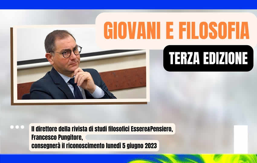 Lunedì 5 giugno verrà consegnato il premio nazionale “Giovani e Filosofia”, promosso dalla rivista online di studi filosofici “Essere&Pensiero”. Giunto alla sua terza edizione, rappresenta un'occasione unica per celebrare e incentivare l'interesse e l'impegno dei giovani nel loro approccio al pensiero critico.