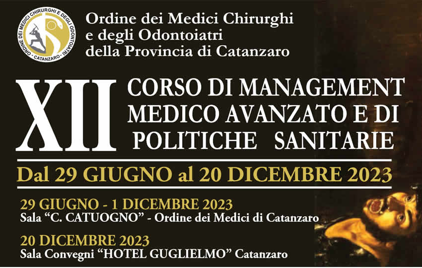 CATANZARO – Taglia il traguardo della XII edizione il Corso di management medico avanzato e di politiche sanitarie organizzato dall’Ordine dei Medici Chirurghi e degli Odontoiatri della Provincia di Catanzaro che sarà inaugurato giovedì 29 giugno, nella sala “Catuogno” nella sede dell’Ordine in via Settembrini a Catanzaro, per concludersi poi il 20 dicembre nella Sala Convegni dell’Hotel Guglielmo.
