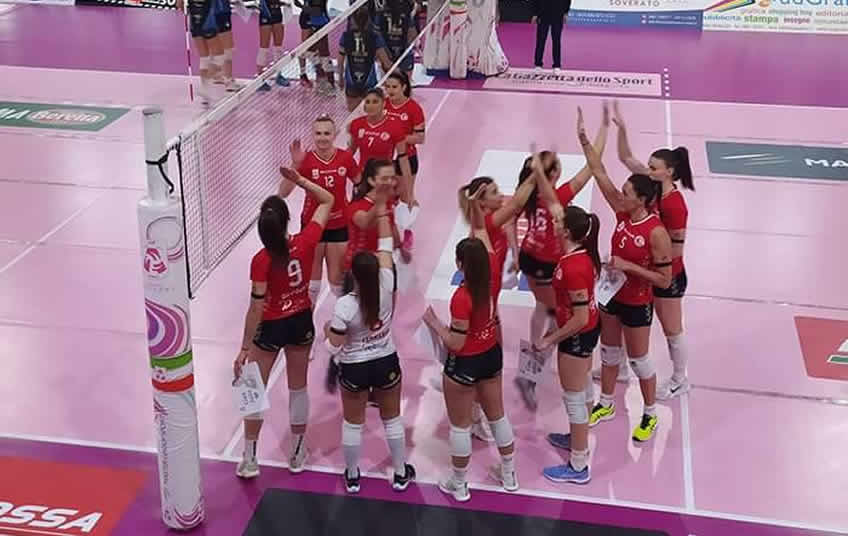 Per quanto riguarda la gara contro la Hermaea Olbia, la squadra di Chiappini scende in campo con Malinov e Korhonen a formare la diagonale, al centro Cecchi e Gaia Tolotti, in banda la statunitense Schwan con capitan Giugovaz, libero Ferrario. Rispondono le ospiti con Bridi in regia e Fontemaggi opposto, al centro Tajè con Ganner, schiacciatrici sono Bulaich e Miiler con libero Alice Barbagallo. Inizia il match con Soverato avanti 9-6 e primo time out della gara per Olbia; allungano sul 14-10 le locali che cercano subito di dare un'impronta precisa alla loro partita. Spingono le ragazze di Chiappini e chiudono il parziale 25/16. Continua a giocare bene la squadra di casa che nel secondo gioco riesce a guadagnare un buon margine di vantaggio e vincere meritatamente il set 25/19. Anche nel corso del terzo set parte bene il Volley Soverato che conduce 6-2 con Olbia che sembra fare fatica a restare dietro le avversarie. Cecchi e compagne allungano sul 12-5 con le ospiti che sembrano non riuscire ad opporre resistenza e infatti anche questo parziale finisce nettamente nelle mani delle biancorosse di coach Chiappini, che conquistano l'ultima vittoria di stagione e l'11esimo posto finale nella Pool Promozione.