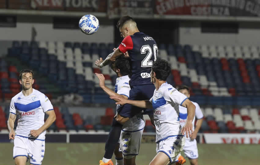 Un colpo di testa dell’attaccante regala ai rossoblù una vittoria di fondamentale importanza contro il Brescia nella gara d'andata dei playout di serie B